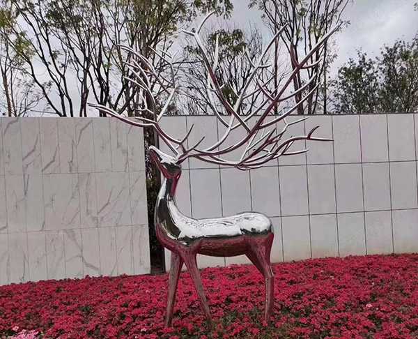 優(yōu)藝雕塑制作的的這一只鏡面不銹鋼鹿雕塑,總高4.5米,工廠歷時(shí)20天制作完成,整體包裝物流發(fā)貨歷時(shí)約5天到貨。雕塑可放置在花園樓盤公園商場(chǎng)等地方的草地水景處。雕塑采用常規(guī)國標(biāo)304 2.5mm不銹鋼板材鍛造,雕塑整體采用優(yōu)質(zhì)不銹鋼板材切割焊接,表面進(jìn)行高級(jí)鏡面拋光處理。