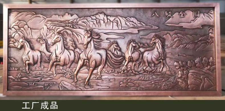 銅浮雕是浮雕藝術(shù)的一種,設(shè)計好圖案后,按照一定的工藝流程,以特制的工具和特定的技法,在金屬板上加工出千變?nèi)f化的浮雕狀圖案。